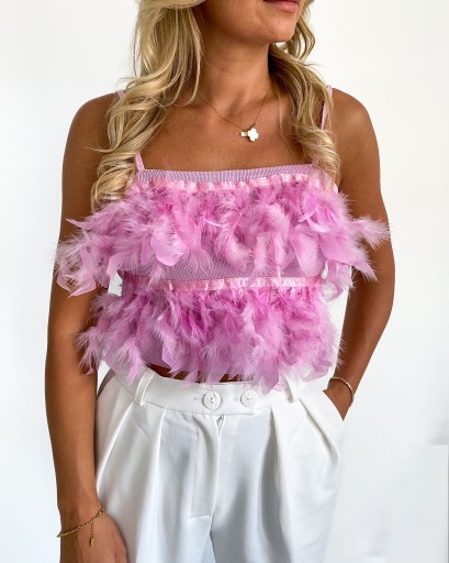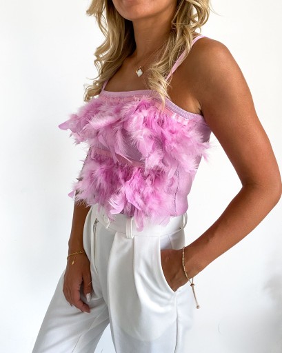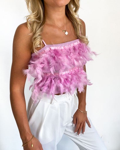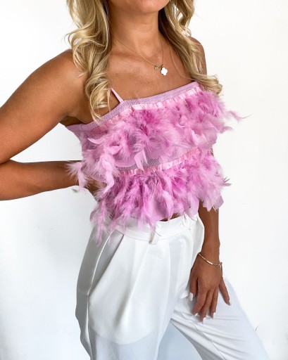 РОЗОВЫЙ ТОП С РОЗОВЫМИ ПЕРЬЯМИ БЛУЗКА НА РЕМЕШКАХ