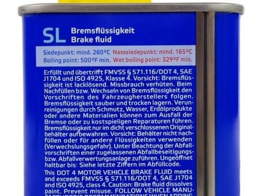 Zadaniem płynu w układach hamulcowych jest przenoszenie ciśnienia. Z uwagi na specyficzną pracę i bardzo dużą odpowiedzialność pracy płyny hamulcowe muszą cechować się unikalnymi właściwościami fizykochemicznymi. Temperatura wrzenia płynów musi być na tyle duża, aby nie doszło do "zagotowania się" płynu w czasie ekstremalnej eksploatacji. Parametry lepkościowe muszą znajdować się w takim zakresie, aby możliwa była praca hamulców w niskich temperaturach, przy zachowaniu pełnej szczelności układu hamulcowego. Środki będące nośnikiem ciśnienia w układach hydraulicznych są niezwykle aktywne chemicznie i higroskopijne, dlatego należy unikać kontaktu płynu hamulcowego z lakierowanymi powierzchniami i ludzką skórą. Zawartość wody w płynie hamulcowymi większa niż 3 procent obniża temperaturę wrzenia do tego stopnia, że niemożliwa staję się poprawna praca układu. Hydraulicznie sterowane sprzęgła podczas swojej pracy także wykorzystują płyn hamulcowy jako nośnik ciśnienia. Płyn hamulcowy ATE SL DOT4 przeznaczony jest do użytkowania we wszystkich pojazdach, w których producenci zalecają środek tej klasy – przykładem jest tutaj większość samochodów produkcji amerykańskiej. Temperatura wrzenia płynu ATE SL DOT4 oscyluje w granicach 260 st. C, a rekomendowany okres eksploatacji nie powinien być dłuższy niż 1 rok.