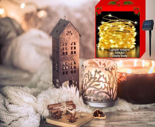 LAMPKI SOLARNE 200 LED DRUCIKI BIAŁĘ CIEPŁE