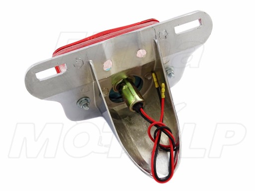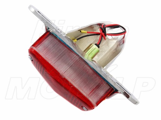 Lampa z czerwonym kloszem białą żarówką 12V 23/8W (światło pozycyjne, stop oraz podświetlenie tablicy rejestracyjnej).