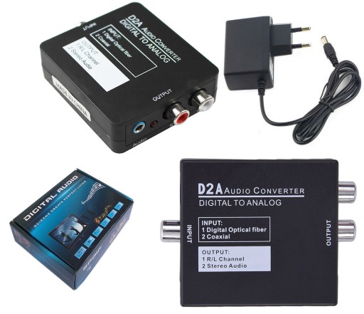 - Konwersja cyfrowe współosiowe lub Toslink na analogowe sygnały audio audio L / R i łączy do urządzenia zewnętrznego, takiego jak wzmacniacz za pomocą standardowych gniazd RCA