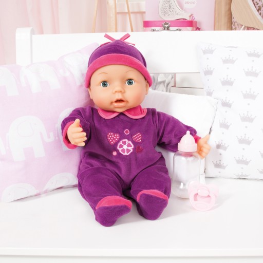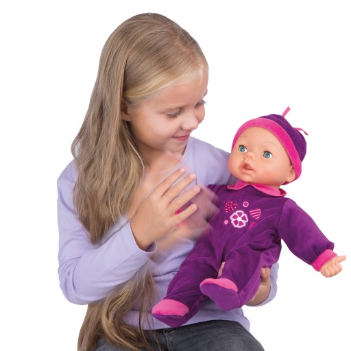 Lala z 26 różnymi odgłosami dziecka np. płacz, chichot, posiada śpiące oczy tzn. gdy się ją położy zamyka oczy.
