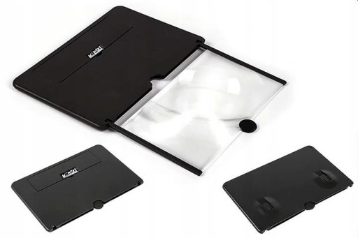 Wbudowana podstawka na telefon umożliwia oglądanie powiększonych filmików bez użycia rąk. Ekran działa bez aplikacji oraz kabli, baterii i zasilania źródła prądu.