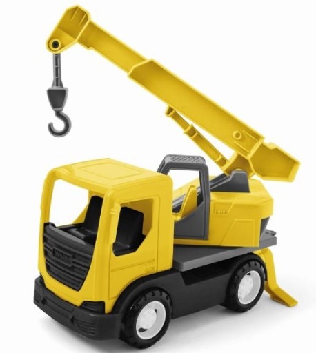 Samochód typu dźwig, wykorzystywany jest do prac przeładunkowych, przenoszenia dużych gabarytowo i ciężkich materiałów, zatem bez niego niemożliwe jest wykonywanie jakichkolwiek prac budowlanych. Zaletą tego pojazdu jest możliwość swobodnego poruszania się po placu budowy. Dźwig z serii Tech Truck jest pojazdem mobilnym, zwrotnym i wytrzymałym o długości 26 cm, w atrakcyjnej kolorystyce. Zabawka posiada ruchomą podstawę z kabiną operatora oraz ruchome i wysuwane ramię z zamontowanym na końcu hakiem. Dołączone do pojazdu podpory stabilizują i zabezpieczają dźwig w trakcie pracy.