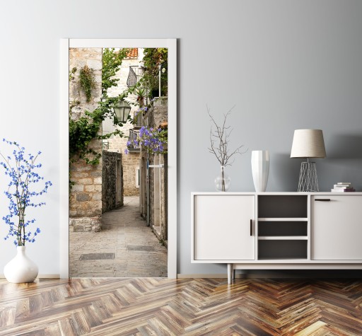 Uwaga: Nie wycinamy otworów na klamki, wizjery itp. Można wykonać je we własnym zakresie przy pomocy nożyka do tapet.