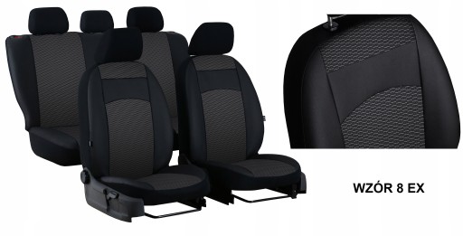 Nasze pokrowce ROYAL zakrywają fotele w całości. Część frontowa (pas środkowy) wykonano z tkaniny tapicerskiej, boki zaś ze skóry ekologicznej. Plecy, zagłówki i boczne wykończenia uszyto z mocnego, czarnego materiału. Dzięki temu rozwiązaniu oryginalna tapicerka foteli jest chroniona przed zniszczeniem oraz zabrudzeniami w najbardziej narażonych na to miejscach.