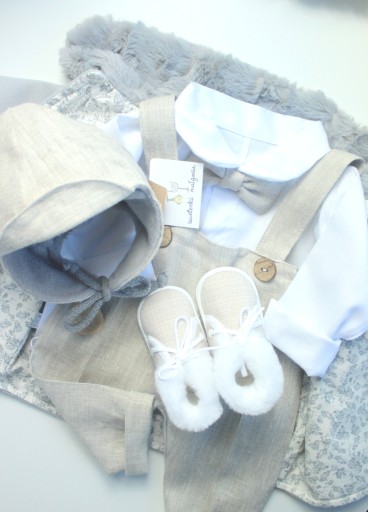 Lniany Zestaw Do Chrztu r. 80 / Płaszczyk 5 części