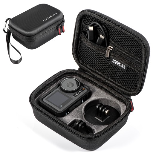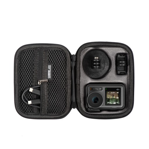 【Pokrowiec Osmo Action 3】 Pokrowiec z twardą skorupą Osmo Action 3 został zaprojektowany, aby zapewnić dużo miejsca na kamerę i akcesoria DJI Osmo Action 3, będąc jednocześnie tak kompaktowym i przenośnym, jak to tylko możliwe.