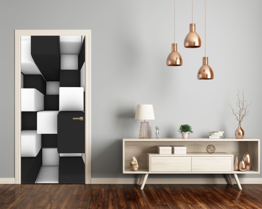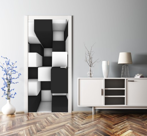 ЧЕРНО-БЕЛЫЙ 3D-УЗОР НАКЛЕЙКА на дверь шпон