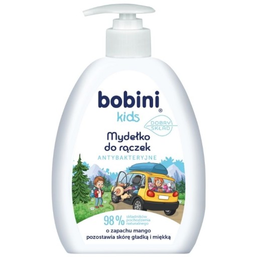 Mydełko do mycia rączek Bobini Kids to także prawdziwa chwila frajdy! Etykiety z angażującymi obrazkami, na których dzieci przeżywają przygody ze swoim milusińskim towarzyszem – pieskiem, sprawią, że pielęgnacja stanie się prawdziwą przyjemnością