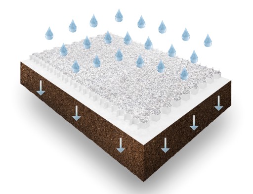 COREgravel jest prosty i bezproblemowy do ułożenia oraz bez konieczności przyłączenia do systemów komunalnego odprowadzania wody deszczowej.