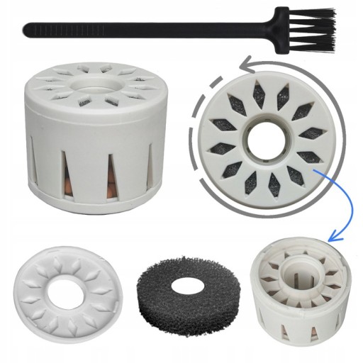 - Filtr który został dołączony do oferowanego przez nas nawilżacza nie wymaga wymiany. Filtr jest dwustopniowy, pierwszy to filtr gąbkowy a drugi to filtr ceramiczny. Gdy filtr się zabrudzi wystarczy go rozebrać przekręcając w lewo górną pokrywę filtra. Filtr gąbkowy należy wymyć detergentem typu płyn do mycia naczyń. Filtr ceramiczny wystarczy usunąć z niego nalot z kamienia przy pomocy kwasku cytrynowego tak jak to się robi w przypadku czajników do gotowania wody.