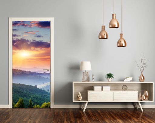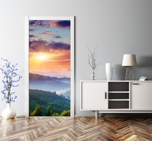 ZACHÓD SŁOŃCA W GÓRACH okleina naklejka na drzwi