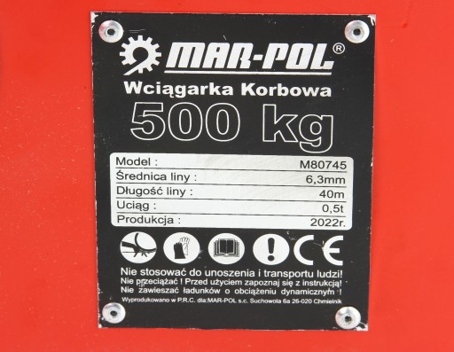 КРЕНОЧНАЯ ЛЕБЕДКА MAR-POL 500 КГ ТРОСОВАЯ ЛЕБЕДКА