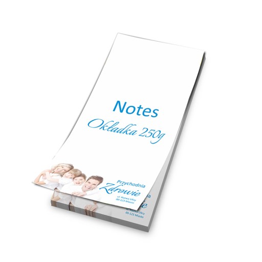 Notesy kryją za sobą wiele możliwości. Mogą być czyste, w kratkę lub linie, zawierać tabelki z dowolnymi specyfikacjami, jak np. data kolejnej wizyty, miejsce na pieczątkę, lista leków do wykupienia i wiele wiele innych.
