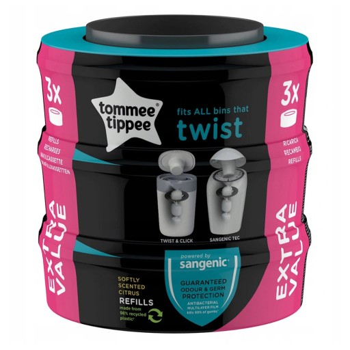 TOMMEE TIPPEE WKŁADY DO KOSZA POJEMNIKA NA PIELUCHY TEC I TWIST 3 SZTUKI