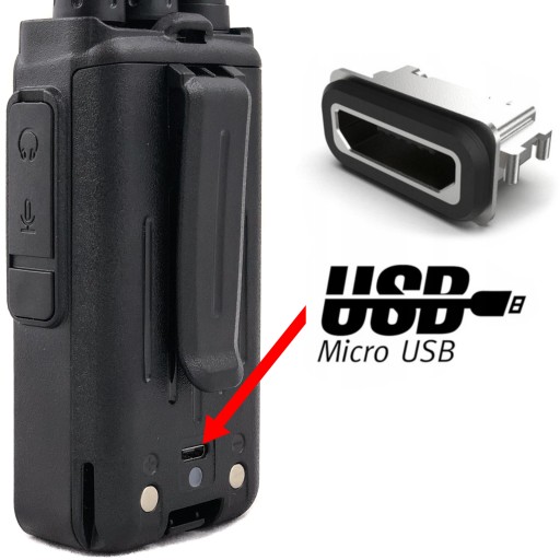 Radio TYT TC-666F jako jeden z niewielu na rynku posiada port MicroUSB. Zdecydowanie ułatwia to korzystanie z radia dzięki czemu możemy je ładować bezpośrednio poprzez ładowarkę samochodową, laptopa, powerbank itp.