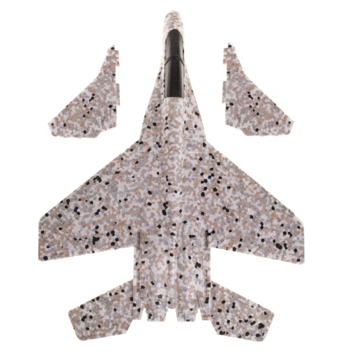 Fantastyczny lekki odrzutowiec wykonany z tworzywa przypominającego styropian.