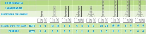 Stężenia ukośne i poziome posiadają zabezpieczenia przed złożeniem się rusztowania.