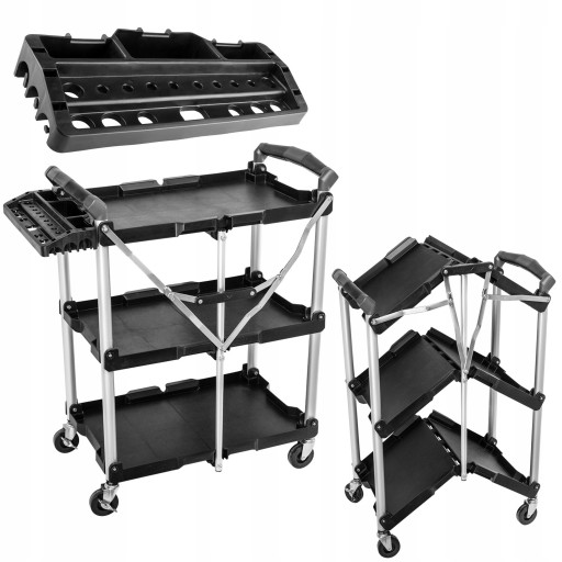 NEO WÓZEK WARSZTATOWY 75kg NARZĘDZIOWY 3 PÓŁKI ORGANIZER SKŁADANY HAMULEC
