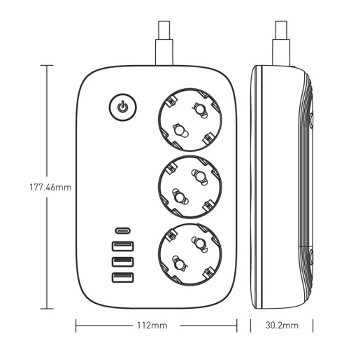 Sama listwa jest bardzo kompaktowa i pasuje do każdego rodzaju gniazda 230V w Polsce.