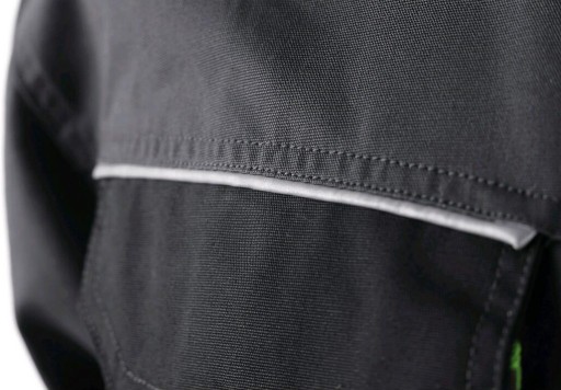 - Charakteryzuje się bardzo mocnym szyciem oraz wzmocnieniami na kieszeniach oraz kolanach z materiału odpornego na przetarcia (600D)