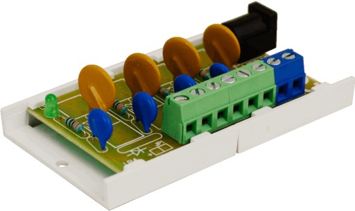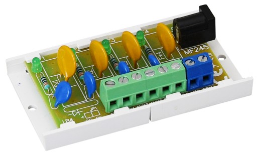 Dodatkowo każde z wyjść zabezpieczone jest warystorem chroniącym zasilacz oraz odbiorniki przed skutkami wystąpienia przepięć w układzie zasilania.