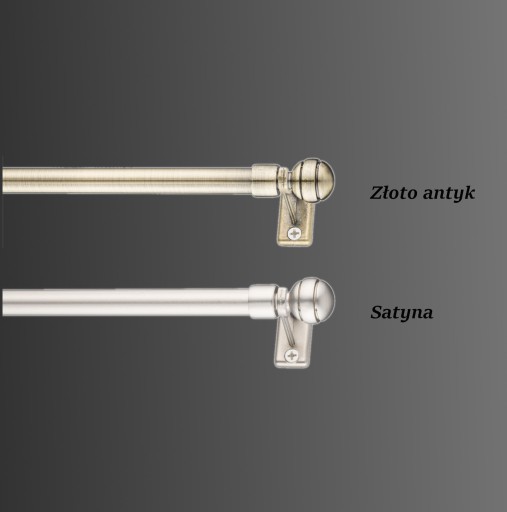 - 1 x rozsuwany metalowy pręt mini karnisza zwieńczony końcówkami w kulistym kształcie z ozdobnym ryflowaniem w dwóch miejscach