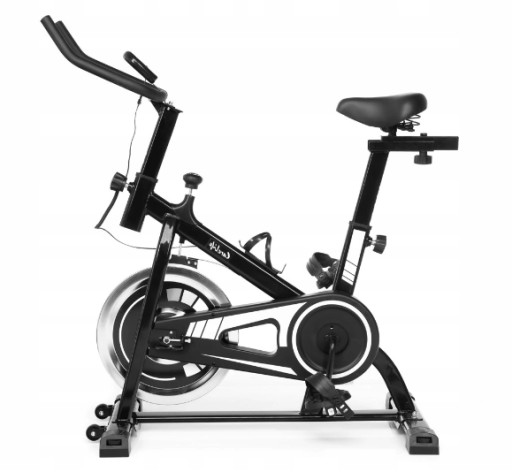 - rower spinningowy posiada mechaniczny system oporu z paskiem napędowym oraz ze stalowym kołem zamachowym. Dzięki specjalnej konstrukcji urządzenie osiąga siłę oporu 10kg przy zastosowaniu koła zamachowego o wadze 8kg.