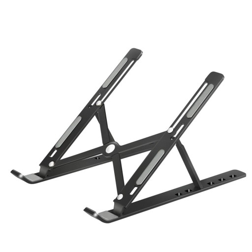 Stojak jest składany, dzięki czemu po złożeniu ma bardzo małe gabaryty. Zmieści się do każdej szuflady czy torby na laptopa.