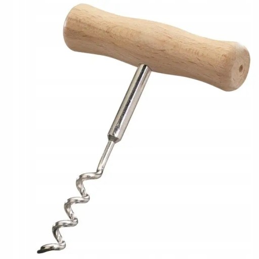 Uniwersalny korkociąg z metalową spiralą oraz drewnianym uchwytem to poręczne urządzenie dla fanów dobrego wina.