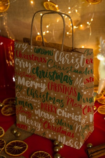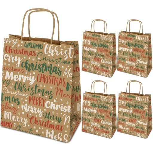 TORBY PAPIEROWE ŚWIATECZNE 18x8x22,5 cm NAPISY MERRY CHRISTMAS na PREZENTY