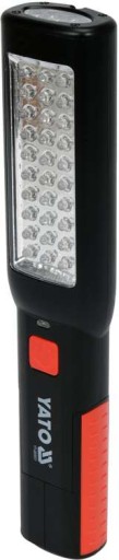 Akumulatorowa lampa warsztatowa marki YATO ze światłem głównym 100lm oraz latarką 45lm. Model wyposażony w pojemną, litowo-jonową baterii o pojemności 1800mAh zapewni minimum 3,5h ciągłej pracy. Wykonany z wytrzymałego materiału ABS, który zapewnia klasę ochrony mechanicznej IK05. Obrotowy korpus, 2 haczyki oraz 2 magnesy umożliwią właściwe ustawienie strumienia światła. Kontynuacja bestselleru YT-08505.