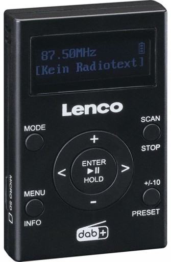 Wraz z Lenco PDR-011 masz system multi-audio 3 w 1 z radiem DAB+, radiem FM i odtwarzaczem MP3. Wszędzie możesz słuchać swoich ulubionych stacji radiowych w cyfrowej jakości DAB+ lub w jakości FM, a jeśli wolisz słuchać własnej muzyki, możesz skorzystać z odtwarzacza MP3, który przechowuje ulubione utwory na karcie micro SD . Dzięki PDR-011 możesz słuchać ulubionej muzyki gdziekolwiek chcesz, za pomocą tylko jednego urządzenia. A przy wysokości zaledwie 8,5 cm z łatwością mieści się w kieszeni. Możesz również nosić radio na nadgarstku za pomocą dostarczonego paska. Na czytelnym, podświetlanym wyświetlaczu LCD możesz zobaczyć, której stacji słuchasz. Ładowanie baterii PDR-011 trwa około 3 godzin.