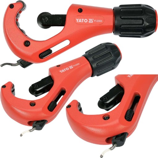 Obcinak marki YATO przeznaczony do rur miedzianych, aluminiowych, ze stali nierdzewnej oraz plastikowych. Posiada 4 obrotowe rolki dociskowe oraz gratownik.