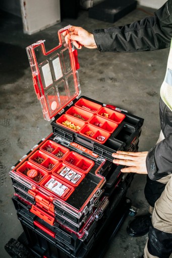 - Zapięcia (dwuczęściowe, składane) oraz łączniki skrzyń Qbrick System One cechuje wyjątkowa wytrzymałość.