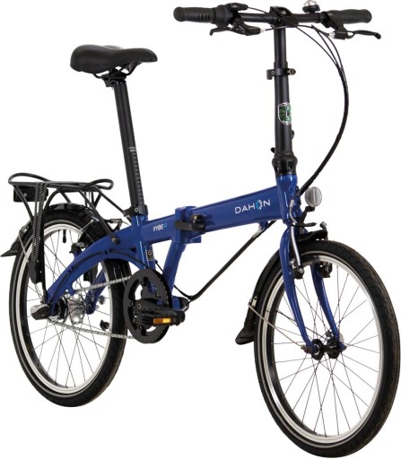 Rama: aluminiowa rama składana „VYBE i3s” Widelec: sztywny widelec Przerzutka: Shimano Nexus 3-biegowa, LL Obręcze: Dahon, aluminiowa komora wydrążona Hamulce: aluminium V-brake Piasta: przód: aluminium Tył: aluminium 3-biegowa, na biegu jałowym Opony : 20" x 1,75" czarny Siodełko: Dahon Ergo Comfort Waga: ok. 12,3 kg Kolor: niebieski Wymiary po złożeniu: 67 x 34 x 72 cm rec. Wzrost jeźdźca: 145 - 190 cm DMC: ok. 105 kg