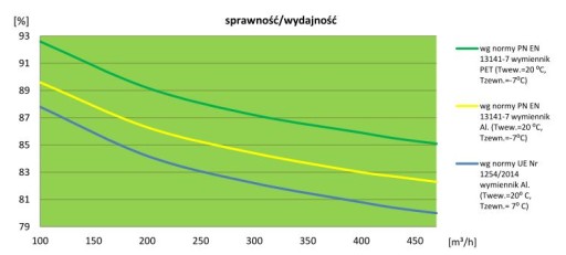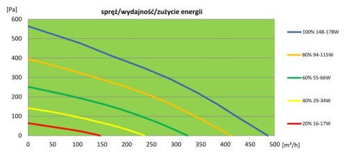 - Bardzo niskie zużycie energii przy wymianie 103 m3/h centrala wentylacyjna zużywa 17W