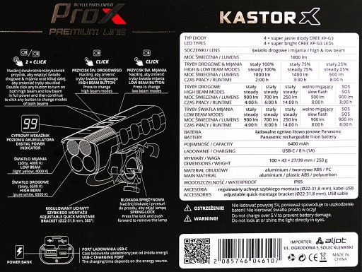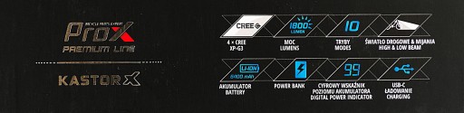 LAMPKA PROX KASTOR X 1800LM POWERBNK 6400mAh USB-C