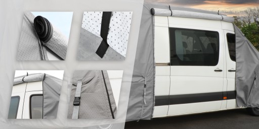 Pokrowiec idealnie nadaje się do użytku zarówno na polu kampingowym, a także po zakończonym sezonie dla zabezpieczenia pojazdu przed zmieniającą się aurą pogodową.