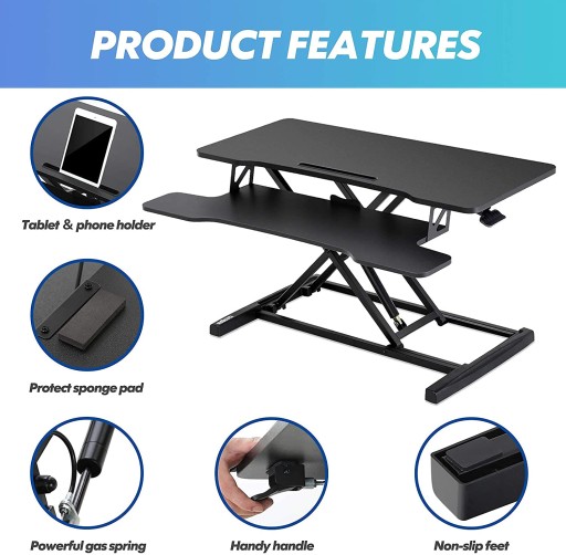 Łatwy w użyciu: nasz konwerter na biurko z funkcją sprężyny gazowej, sprężyna gazowa zapewnia pełne doładowanie w procesie podnoszenia i opadania, podnoszenie i ciągnięcie uchwytu może z łatwością osiągnąć wysokość.
