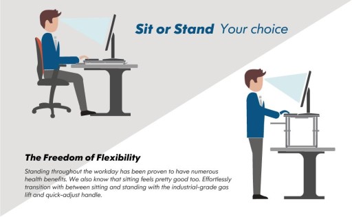 Nasze biurko ma regulowaną wysokość od 11,5 do 50,4 cm, dzięki czemu możesz pracować na przemian stojąc lub siedząc. Zapewnia to lepszą postawę i pomaga złagodzić ból szyi, pleców i stawów spowodowany siedzeniem przed komputerem.