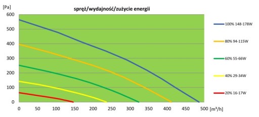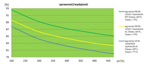- Bardzo niskie zużycie energii przy wymianie 103 m3/h centrala wentylacyjna zużywa 17W