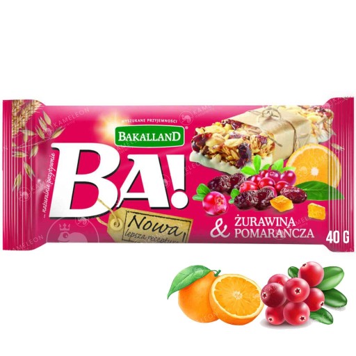 Baton zbożowy BA! to połączenie pełnoziarnistych płatków owsianych, słodkiej żurawiny i aromatycznej pomarańczy. W przepysznej jogurtowej polewie.