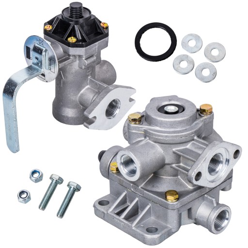 ✅ Zawór ten odpowiada za uruchamianie hamulców przyczepy w momencie naciśnięcia hamulca w pojeździe ciągnącym.