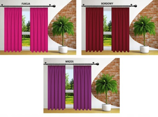 Pasują idealnie do salonu, przedpokoju, kuchni czy tez sypialni. Zasłony jednokolorowe sprawią iż każde miejsce nabierze nowego ducha a zarazem będą pasować do każdego wystroju. Na pozostałych aukcjach znajdą Państwo zasłony o odpowiedniej dla siebie długości. Polecamy także aukcje z zasłonami na wymiar wówczas zasłony skroimy do indywidualnych potrzeb klienta.