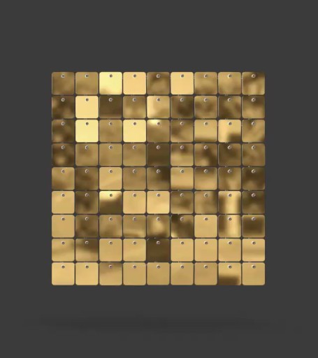 Aukcja dotyczy jednego panelu cekinowego firmy SolaAir model STANDARD KWADRAT o wymiarze 297 x 297mm / długość cekina 30mm w kolorze #44 Light Gold (kolor jasnozłoty).