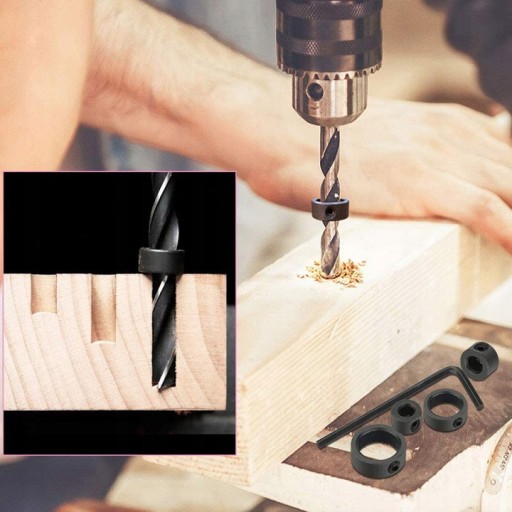 Ogranicznik głębokości jest to zakładany na wiertło metalowy pierścień, blokowany na wiertle za pomocą śruby w tulejce. Dzięki zastosowaniu ogranicznika można szybko wykonać dużą ilość otworów o tej samej głębokości. Uzyskujemy w ten sposób wysoką powtarzalność głębokości wierconego otworu.