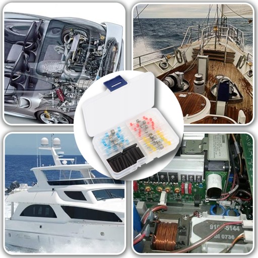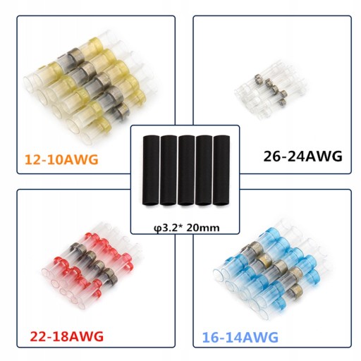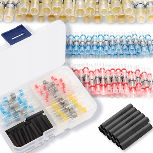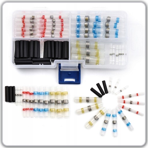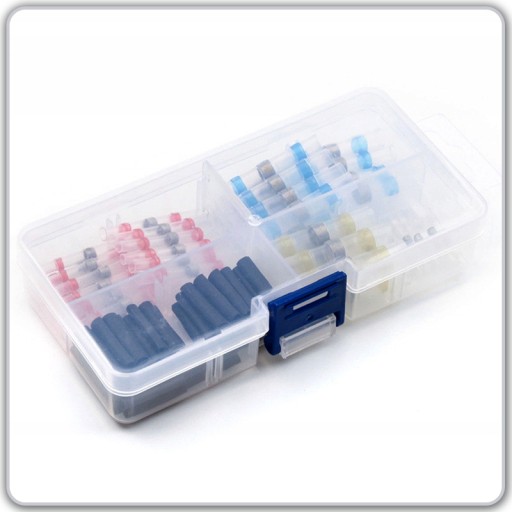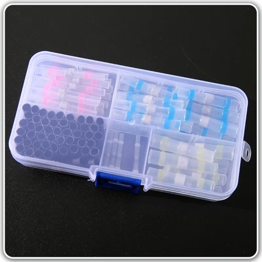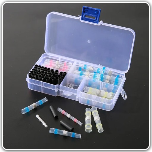 ⭐ Zestaw w podręcznym pudełku szybkozłączek z cyną w rurce termokurczliwej do naprawy i łączenia przewodów.