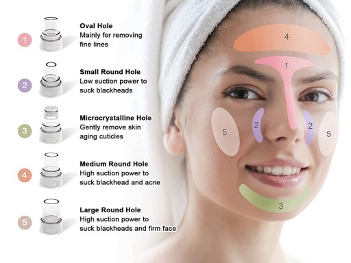 - Głowica ze średnim otworem- odpowiednia siła ssania do pozbycia się trądziku i zaskórników.